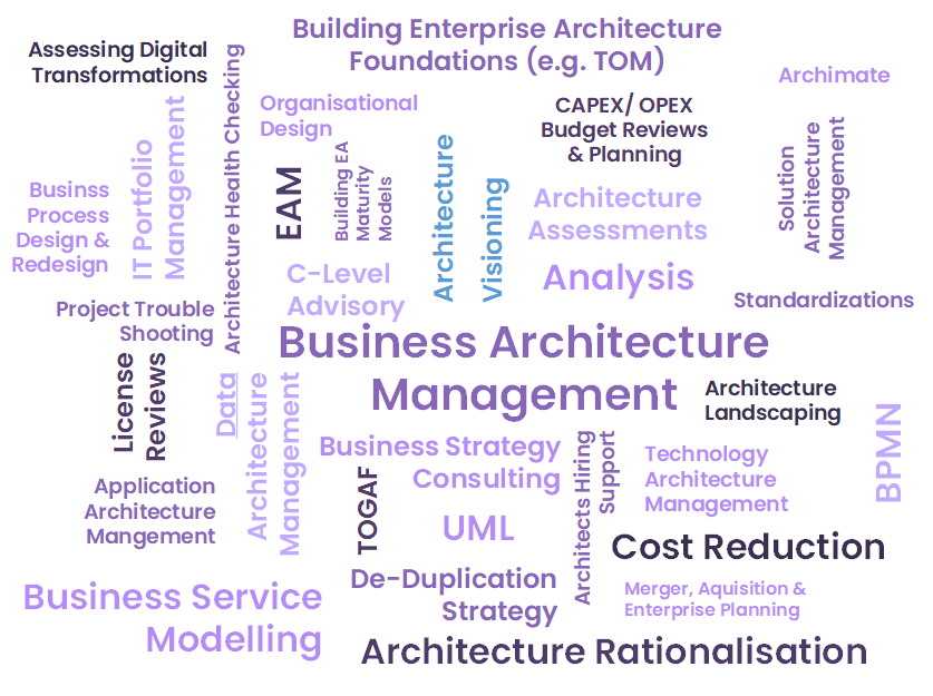 Bald Architecture offers Enterprise Architecture Consulting for Organisations of all sizes.Maybe for yours as well ... especially if you can answer at least one of these questions with yes